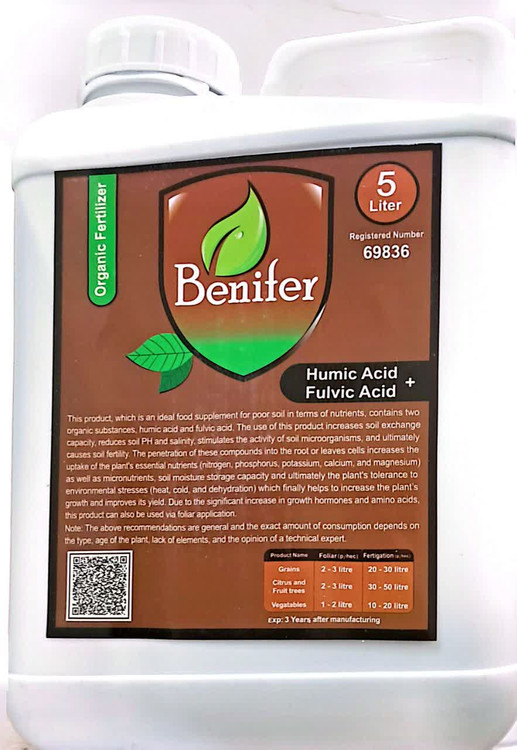 اين محصول حاوى دو ماده آلى هيوميك اسيد و فولويك اسيد كه بعنوان يك مكمل غذايى ايده آل براى خاك هاى فقير از نظر مواد غذايى مى باشد.